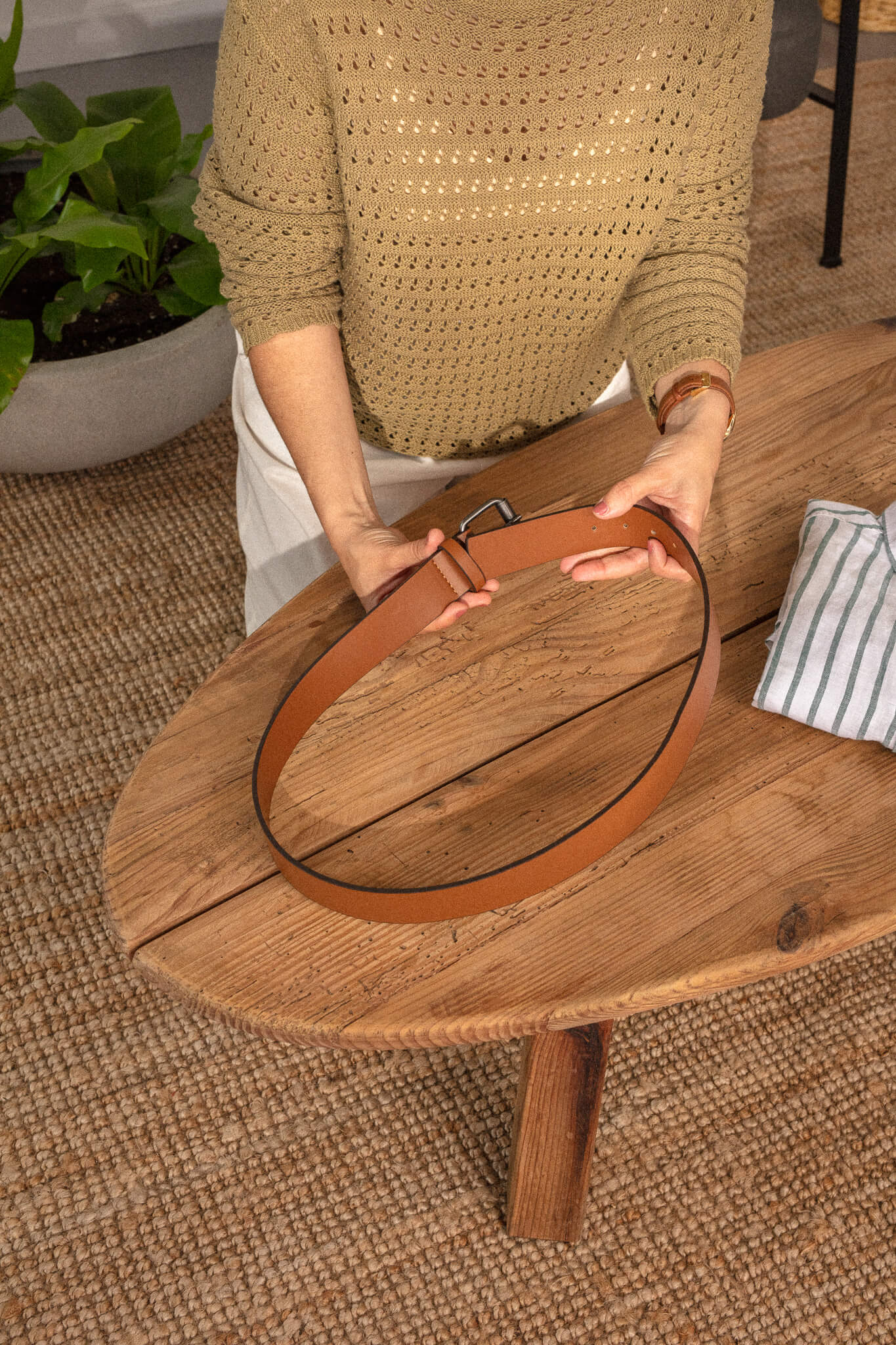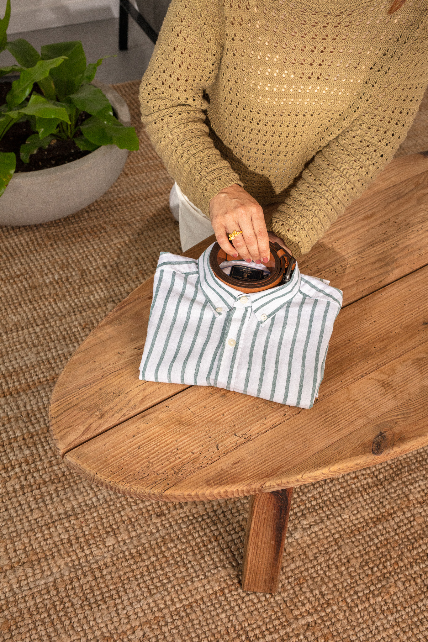 6. Enrole o cinto na gola da camisa para que esta não se deforme